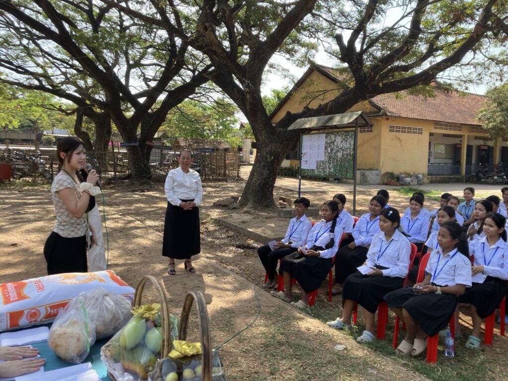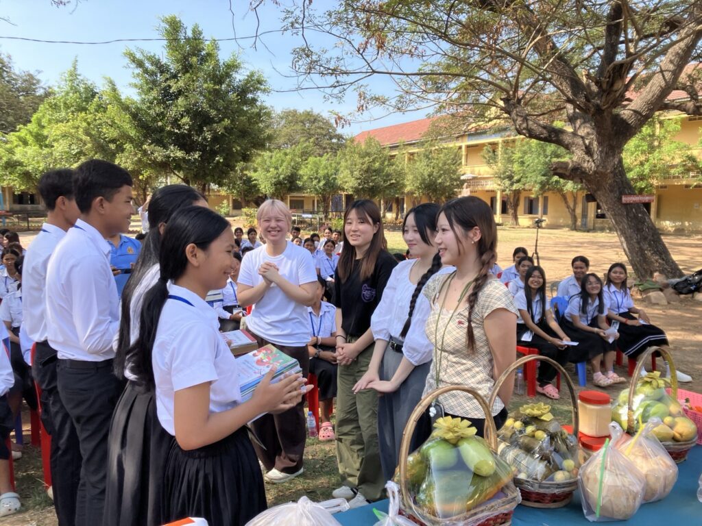 2月に西南女学院大学ゴールデンZクラブのメンバー4名がカンボジアを訪問し、継続的に支援しているバテイ高校に図書と文具を贈ったり、日本文化を体験してもらったりしました。参加したメンバーのコメントを紹介します。