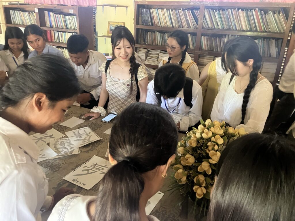 カンボジアの学生に書道を教える経験は、非常に貴重な学びとなりました。言語の違いがある中でも、書道を通して交流できたことに意義を感じるとともに、文化を共有することの大切さを実感しました。