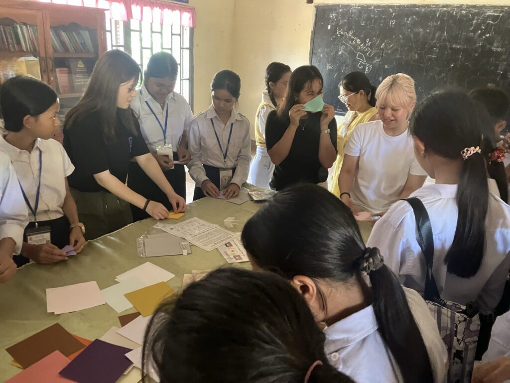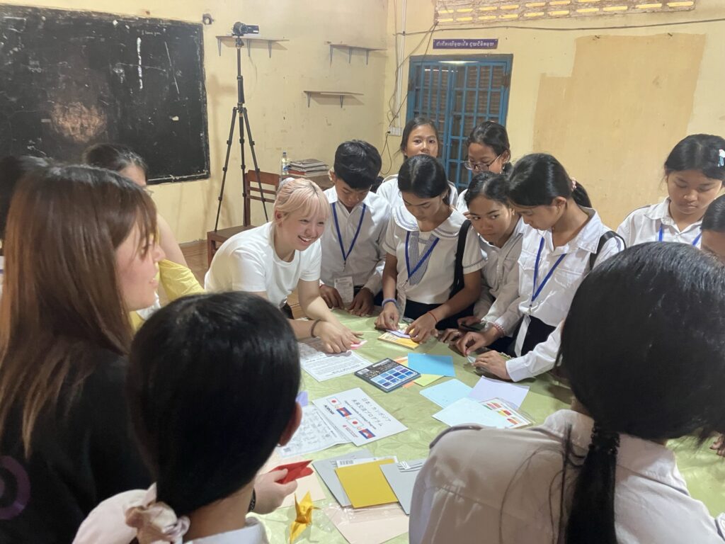 私達はバテイ高校で折り紙を使った交流を行いました。私はこの交流を通してバテイ高校の生徒達に対していかに分かりやすい英語を使うかなどを意識して接することができました。