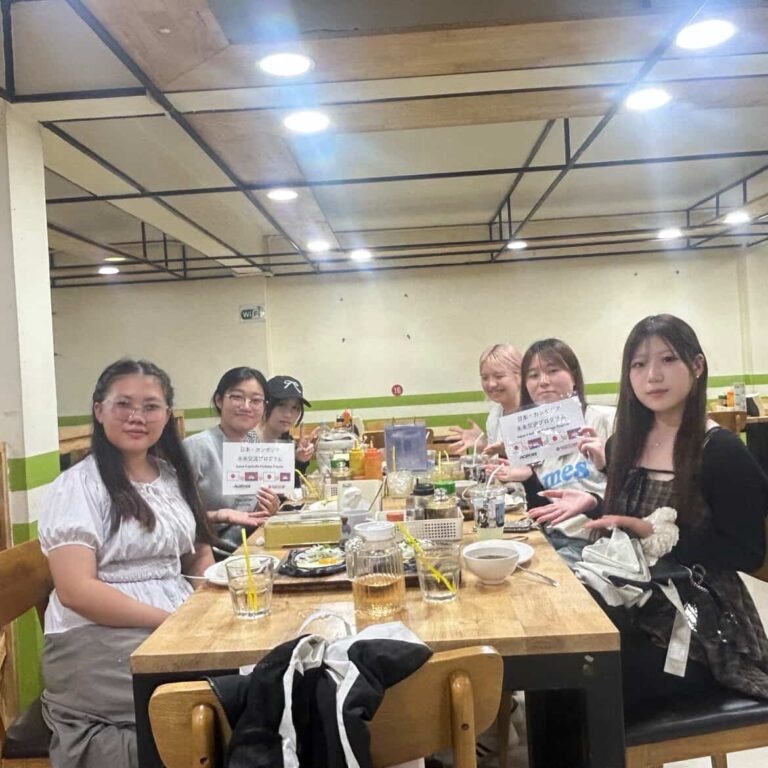 カンボジア学生の4人と現地の方々と関わる中で、人と人とのつながりや言語力、積極的な姿勢の重要性について改めて学ぶことができました。たまに英語での表現が分からず、悔しい思いをする場面がありました。今後は表情やボディランゲージなどを有効的に活用して、’’伝えたい’’という姿勢を大切にしていきたいと思います。